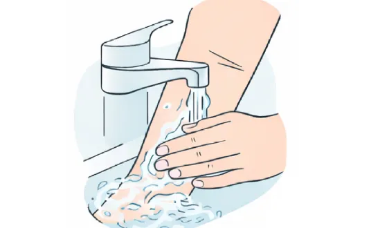 Privilégier les douches courtes au bain et lavez uniquement avec un savon doux au pH neutre, sans frotter.